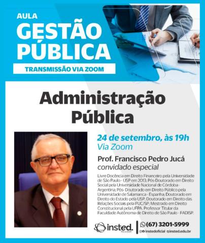 A Academia Paulista de Letras Jurídicas (APLJ) informa que seu presidente, Prof. Dr. Francisco Pedro Jucá, será o convidado especial da Faculdade Insted, em Campo Grande (MS), para ministrar uma aula online sobre Gestão Pública.
