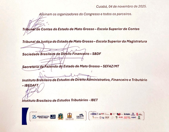Sob a organização da Escola Superior da Magistratura do Estado do Mato Grosso, da Escola Superior de Contas e da Sociedade Brasileira de Direito Tributário e Financeiro realizou-se, nos dias 3 e 4 de novembro de 2025, o 8º Congresso Internacional de Direito Tributário e Financeiro debatendo e discutindo o tema: